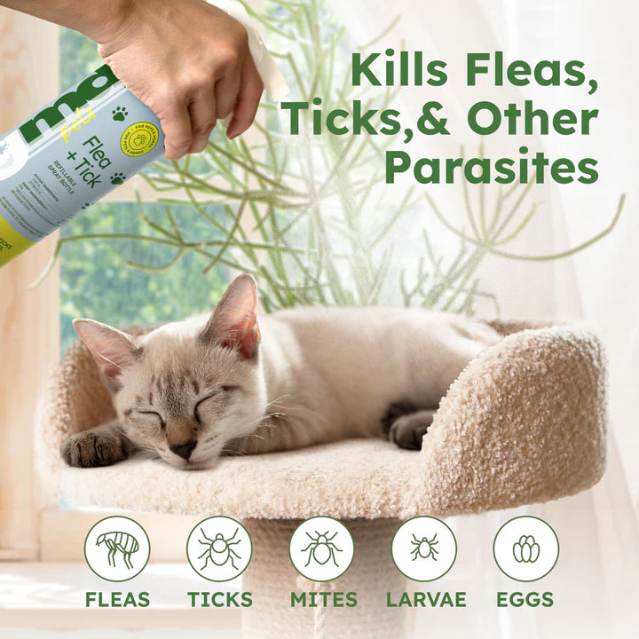 Our plant-powered formula goes deep into pet fur , bedding, carpets, and furniture to eliminate fleas, ticks, and mites where they hide and breed.